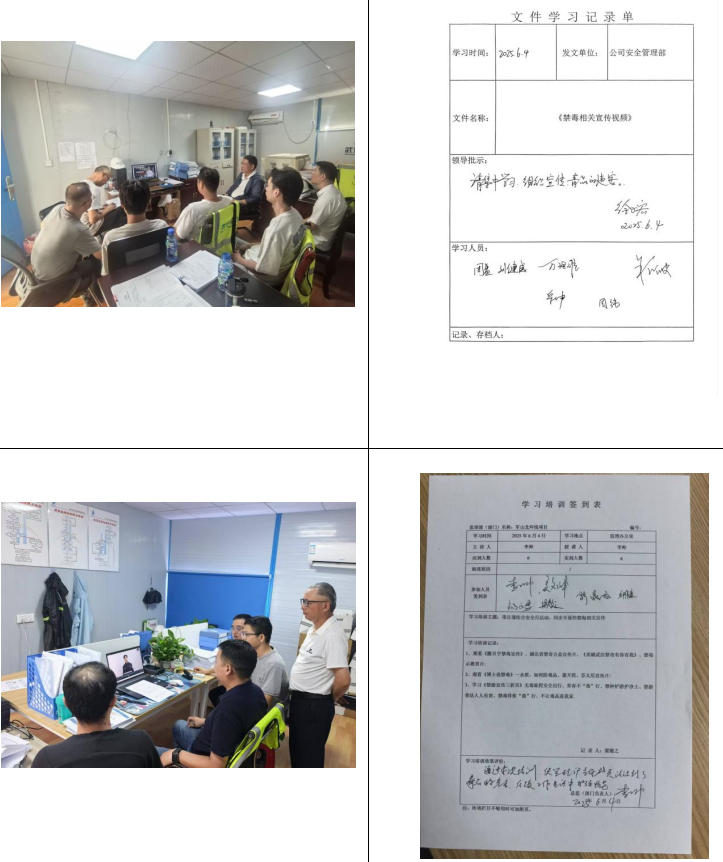 公司将禁毒宣传与安全月活动结合,通过组织各项目部观看禁毒视频、填写学习培训表等方式,覆盖人员200余人,实现“防毒、拒毒、禁毒”意识入脑入心,筑牢企业安全双防线。