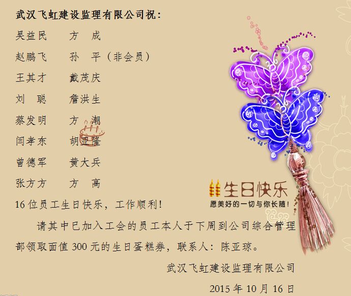 员工生日祝福(10月)